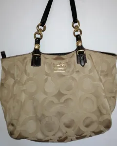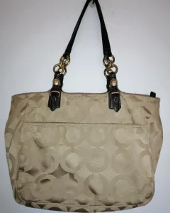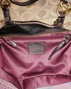 Hermosa bolsa coach con tonos dorados. Esta super práctica. Poco desgaste en los herrajes, por uso. Forro completamente limpio.Medidas Alto 52cm con asa y ancho de la bolsa va de 34 a 38cm.