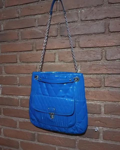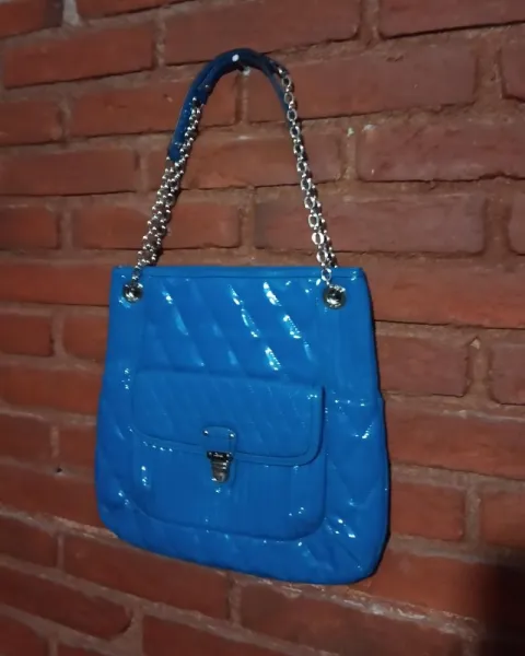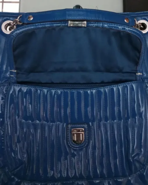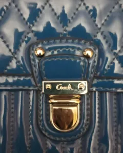 Bolsa coach azul de charol acolchada completamente nueva solo se reventaron algunas partes debejo de la tapa y en una asa
