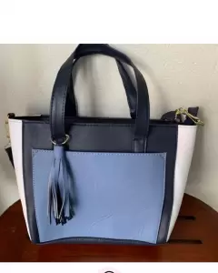 Bolsa de flecos con bolsa interior y frontal, medidas 28x24x11, blanco y azul rey-turquesa, totalmente nueva y lista para envío