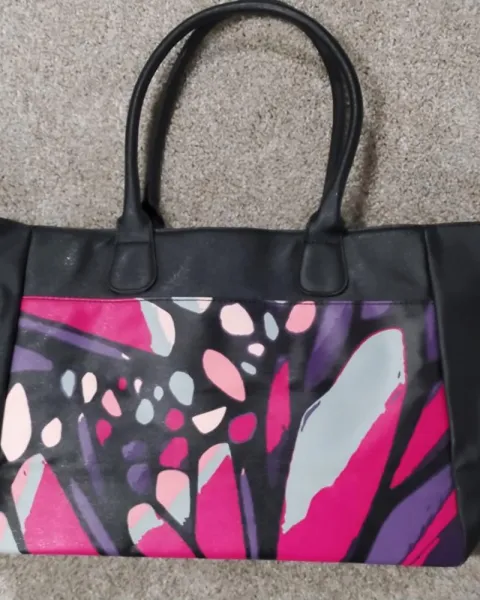 Bolsa de hombro grande Mary Kay. Bolsa edicion limitada Mary Kay de Benito Santos, multicolor estilo alas de mariposaDetalle en parte inferior esquina, no afecta visualmente ni su uso.Dimensiones 50*35*18 aprox.