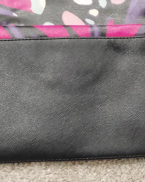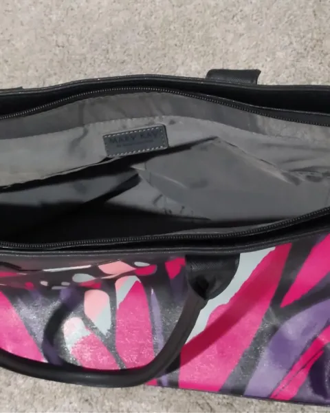 Bolsa edicion limitada Mary Kay de Benito Santos, multicolor estilo alas de mariposaDetalle en parte inferior esquina, no afecta visualmente ni su uso.Dimensiones 50*35*18 aprox.