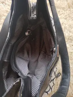 Bolsa de hombro grande Nine WestNegro con beigeSuper amplia, tiene 6 compartimentosSin ningún detalle de raspaduras o desgasteLas correas no están cuarteadasoracticanente nuevaMide 27 cm alto32 alto12 de profundo