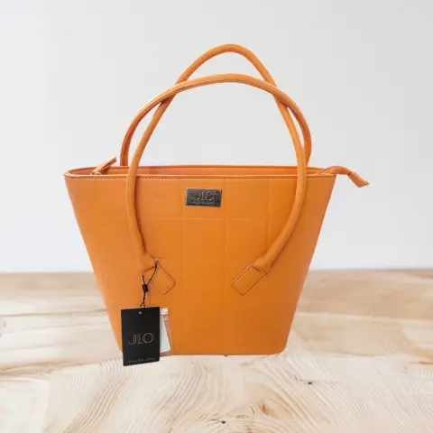 Bolsa de hombro Jennifer Lopez. Bolsa de hombro Jennifer Lopez, talla mediana, color naranja claro, forrada por dentro, compartimiento con cierre individual por dentro, forrada con tela naranja, logo de marca dentro y fuera, hecha de piel sintética, mide 36cm de ancho, 26cm de largo, 11cm de base, correas de26cm de largo nueva a estrenar con etiqueta.