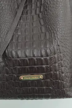 Bolsa de piel con textura cocodrilo. Bolsa de piel color café chocolate marca PALO ROSA, es grande, piel genuina, textura cocodrilo. Impecable, nunca la usé. El asa es muy larga pero puedes hacerla más pequeña.