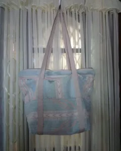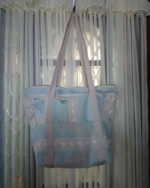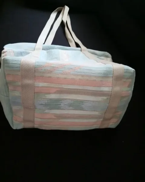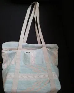 Bolsa de Tela muy resistente en color verde y beige, muy amplia por dentro, se encuentra en perfecto estado.Sus medidas son:Alto 40cmAncho 43 cmBase 17 cm