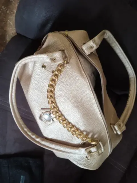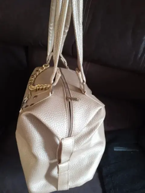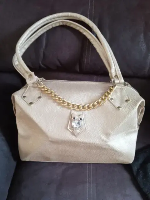 Bolsa dorada. Bolsa color dorado,con aplicación de búho, nueva, muy amplia,con bolsa en la parte exterior, así como al interior.