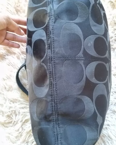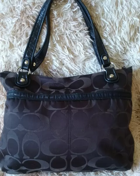 Hermosa bolsa Grande Coach de hombro con Detalles solo de Uso, hacer zoom para detalles en la parte de atrás, No Rota, asas Intactos cómo se puede ver perfectamente en las fotos mide 40 cm de alto por 44 cm de ancho.Puedo bajar el precio con pago Inmediato, Ayúdenos todas 🙌🏽🌸Ojo!! Grabó Video antes por seguridad de mi prenda, corroborando su estado 👁️👁️