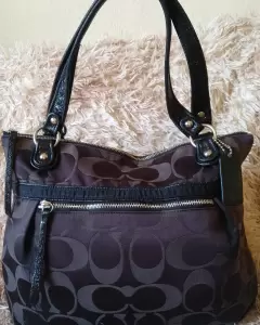 Bolsa Grande Coach Monograma Negra. Hermosa bolsa Grande Coach de hombro con Detalles solo de Uso, hacer zoom para detalles en la parte de atrás, No Rota, asas Intactos cómo se puede ver perfectamente en las fotos mide 40 cm de alto por 44 cm de ancho.Puedo bajar el precio con pago Inmediato, Ayúdenos todas 🙌🏽🌸Ojo!! Grabó Video antes por seguridad de mi prenda, corroborando su estado 👁️👁️