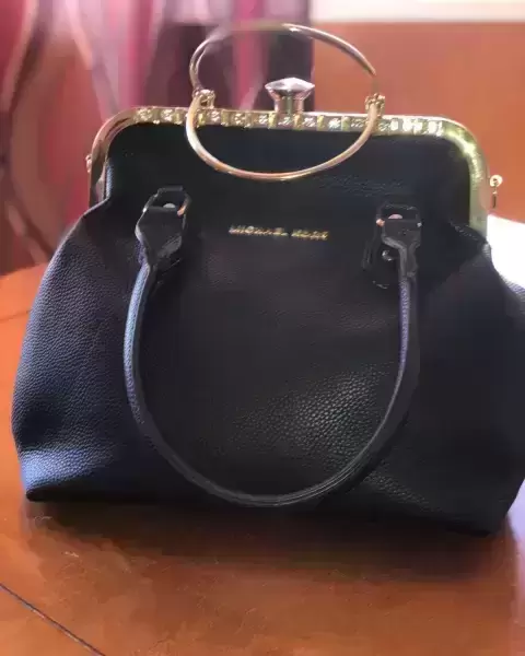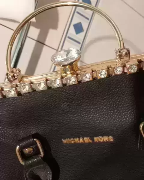 Bolsa grande Michael Kors con aro y piedras. Hermosa bolsa grande de piel en color negro, con asas y aro para diferentes agarres, con piedras y broche de piedra grande. En condición de nueva, sólo se uso 1 vez, esta muy grande y le cabe todo. Simplemente hermosa y perfecta.