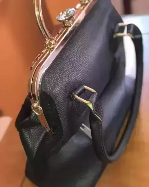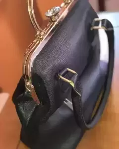 Hermosa bolsa grande de piel en color negro, con asas y aro para diferentes agarres, con piedras y broche de piedra grande. En condición de nueva, sólo se uso 1 vez, esta muy grande y le cabe todo. Simplemente hermosa y perfecta.
