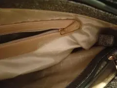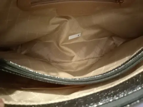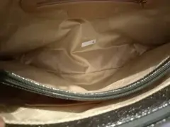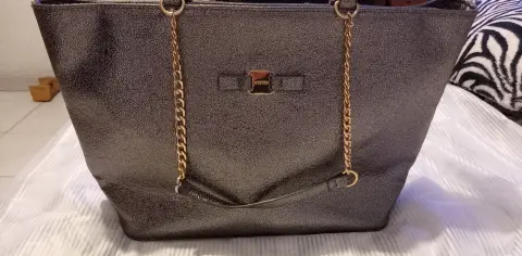 Bolsa grande plateada con asa de cadena, forrada por dentro cierre dorado