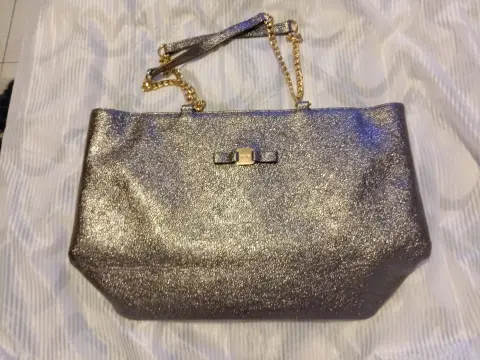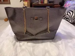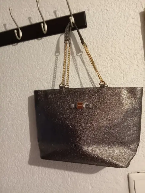 Bolsa grande plateada con asa de cadena. Bolsa grande plateada con asa de cadena, forrada por dentro cierre dorado