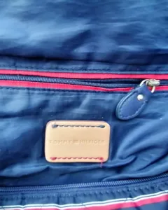Bolsa grande TOMMY HILFIGER. Bolsa casual de tela multicolor azul marino con rojo, placa metálica de la marca en color dorado.Medidas: 48cm de largo*27cm de ancho Ligeramente desgastada de la parte superior