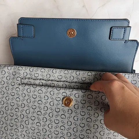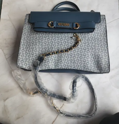 Bolsa Guess azul. Nueva y original.Pregunta por disponibilidad.Bolsa marca Guess se puede usar como bolsa de mano o llevar como crossbody, tiene asa larga.