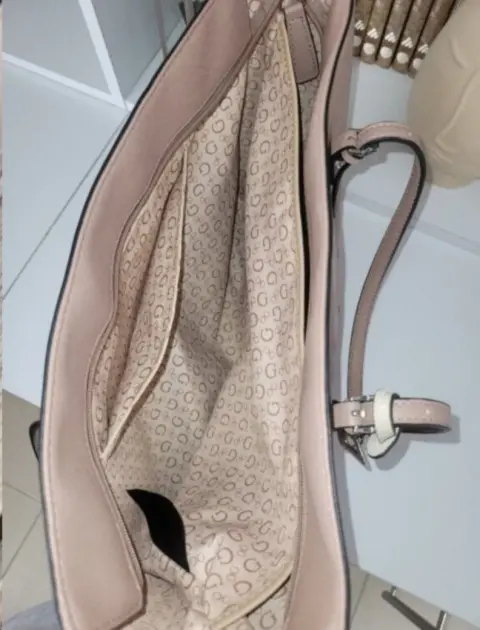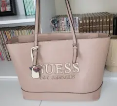 Bolsa Guess grande. Bolsa Guess en color rosa con beige, medidas: 45 ancho, 28 alto, 13 base