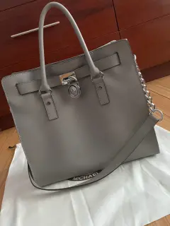 Hermosa bolsa Michael Kors, gris y herrajes dorados, original. Tamaño grande, muy cómoda y elegante