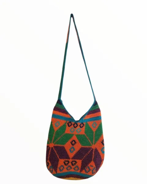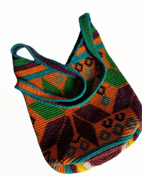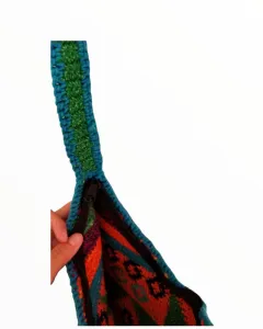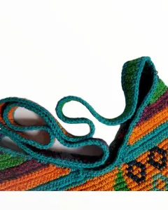 Bolsa Multicolor Artesanal de Guatemala. Bolsa tipo morral, multicolor, tejida en telar de cintura y bordada a mano por artesanos de Guatemala. Medidas: 38cmX30cm, Largo de Asa: 58cm, con cierre de cremallera.