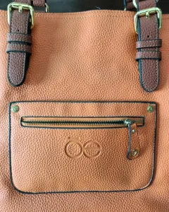 El color verdadero es naranja vivoMideLargo 33 cmAncho 48 cmCorrea 18 cmTiene multiples compartimientoMaterial piel sintética