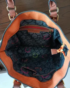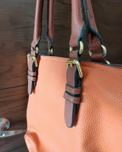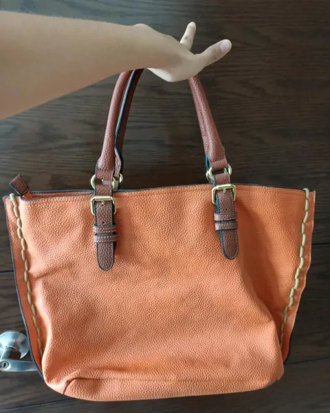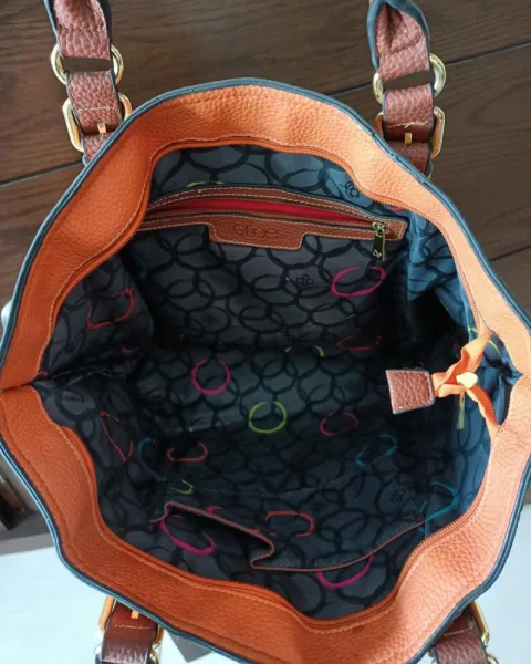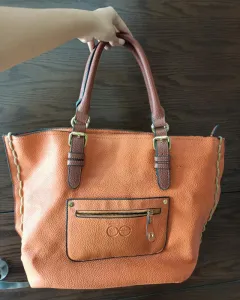 Bolsa naranja Cloe. El color verdadero es naranja vivoMideLargo 33 cmAncho 48 cmCorrea 18 cmTiene multiples compartimientoMaterial piel sintética