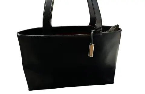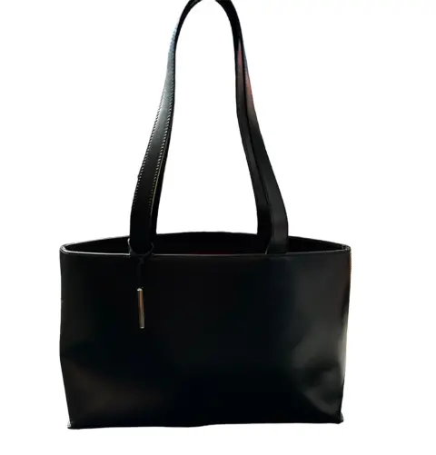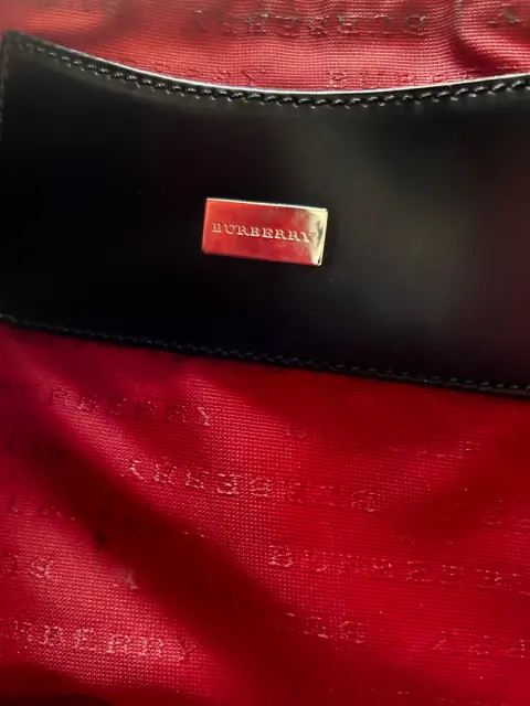 Bolso Burberry, piel negra, asas largas, forrada por dentro con Satín rojo con monograma de la marca.Se entrega con dust bag.