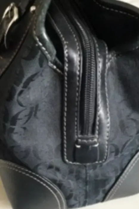 Bolsa negra Fossil. Bolsa negra Fossil, piel con tela, tamaño mediano, espaciosa, envio en caja reciclada