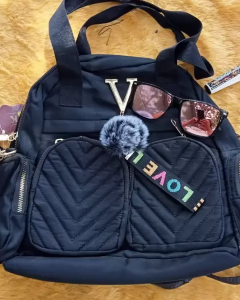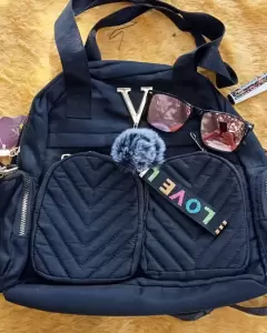 Bolsa negra love. Hermosa mochila y bolsa negra con bolsitas a los costados enfrente , atras todos con cierre.amplia suave practica.
