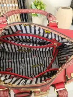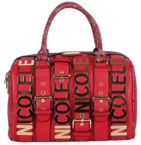 Bolsa Nicole Lee rojo. Elegante bolsa en color rojo con Herrajes dorados, contine asa de mano y correa de hombro Medidas: largo 32, alto 20, base 13