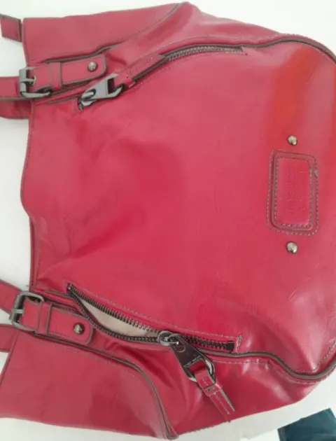 Linda bolsa roja marca Nine West,muy amplia, excelentes condiciones, solo por dentro el forro tiene unas rayas de pluma. Cuenta con 3 compartimentos exteriores (2 con sierre y 1 con botón de presión) y también cuenta con 3 bolsas interiores (1 con sierre y 2 espacios sin sierre)