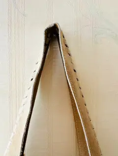 No hay outfit completo sin aúna linda bolsa! Bolsa de tamaño medio a grande tipo saca en piel color arena y con besountes del mismo tono a manera de adorno. Perfecta para un estilo bohemio o casual. Ideal con vestido blanco o de color y llevar de todo. NUEVA!! Perfecta para regalo. No mascotas y no fumadora. Más opciones en mi clóset.