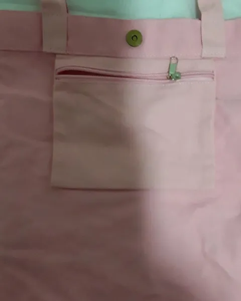 Bolsa grande EspañolaÚnica A estrenar sin etiqueta LovelystreetsDescripción:Bolsa grande cabe bien una laptopBolsa color rosa claroTiene boton de segurida internoBolsita con cierre100% ALGODÓN