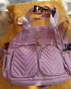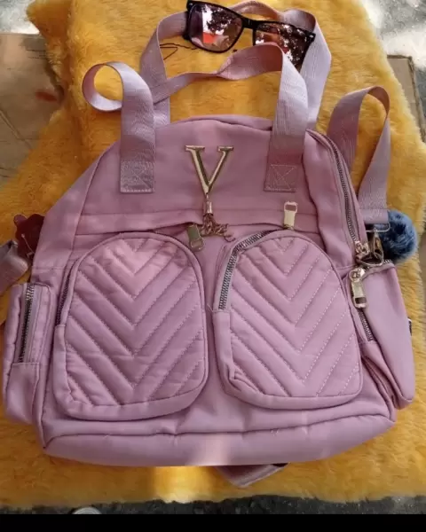 Bolsa rosa pastel. Bonita bolsa trae asas para traerá en el hombro y asas para cruzarse en la espada ajustable. 2 bolsitas laterales, una en la parte de atras, 3 en la parte de fte todas con cierre. Esta hermosa igual el color
