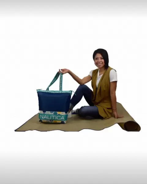 Este increíble set Nautica esta conformado por una bolsa tote insulada y un lindo tapete a juego con la bolsa. Ideal para las vacaciones en la playa, días de campo y salidas al parque.La bolsa viene insulada para poder llevar alimentos y que se conserven fríos o congeladosTapete plegableBolsa fabricada de nylonTapete fabricado de PVC