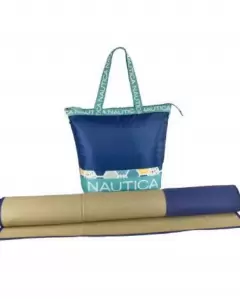 Bolsa tote con tapete Nautica. Este increíble set Nautica esta conformado por una bolsa tote insulada y un lindo tapete a juego con la bolsa. Ideal para las vacaciones en la playa, días de campo y salidas al parque.La bolsa viene insulada para poder llevar alimentos y que se conserven fríos o congeladosTapete plegableBolsa fabricada de nylonTapete fabricado de PVC