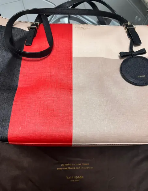 Bolsa original con uso, tiene sus documentos y cubre polvo marca Kate spade, tamaño grande, incluye un pequeño espejo colgante,