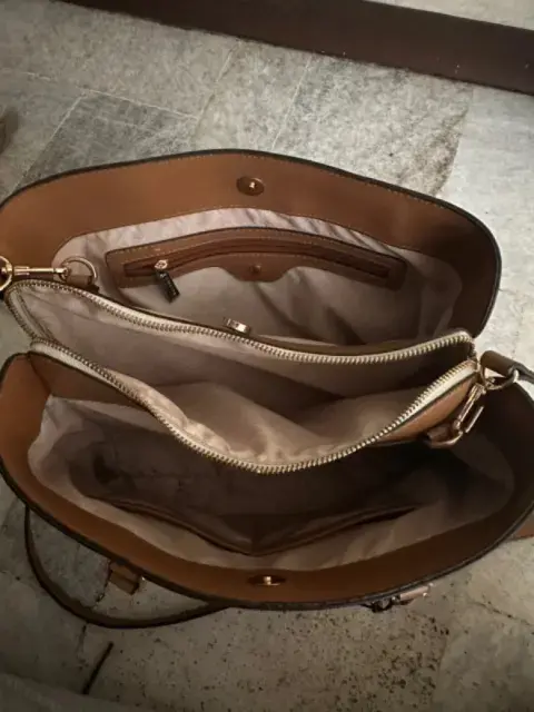 Bolsa grande blanco con café, marca westie, en perfecto estado sin detalles