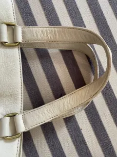 Bolsa de piel color hueso tiene 3 compartimientos y dos bolsas, la piel está súper suavecita, muy bien cuidada