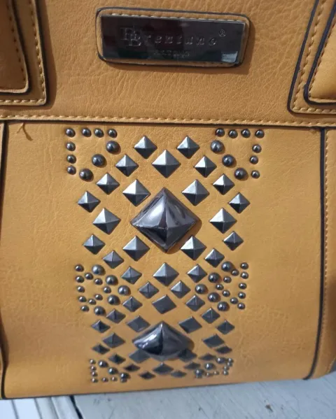 Linda bolsa color amarillo, con detalle de remaches al frente, poco uso, en buenas condiciones.