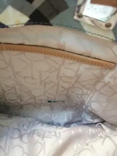 Bolso Calvin Klein, colores neutros,combina con todo. Amplia. Con pequeño detalle de tinta por dentro.