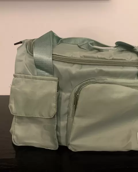 BOLSO GRANDE PARA VIAJE O GYM. Bolso para gym, viaje, escuela o uso diario. Es color menta pero en las últimas imágenes demostrativas aparece color lila. Es grande y le caben bastantes cosas. Está totalmente nueva y muy bonita