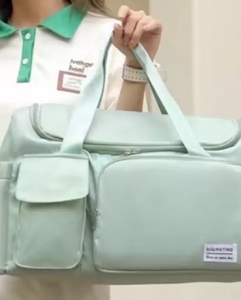Bolso para gym, viaje, escuela o uso diario. Es color menta pero en las últimas imágenes demostrativas aparece color lila. Es grande y le caben bastantes cosas. Está totalmente nueva y muy bonita
