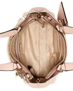 Elaborado con material sintético color rosa con detalle capitonado, doble asa suave, correa para hombro.Bolsillo en la parte posteriorPlaca con nombre de la marca enfrenteIncluye correa ajustable crossbody