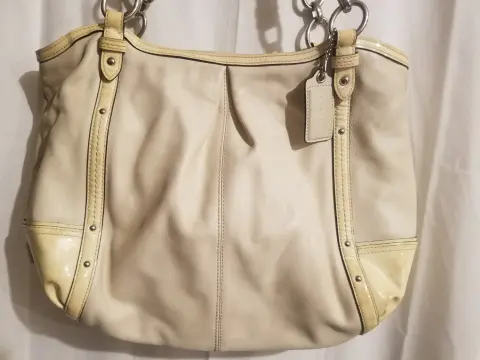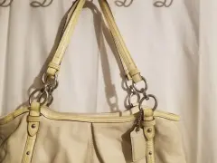Coach beige leather handbag en buenas condiciones de uso sin detalles único modelo disponible no incluyen estuche 16 pulgadas largo
