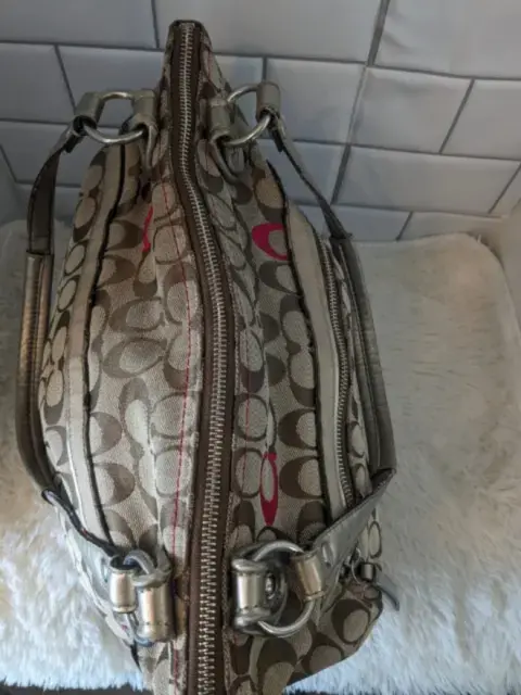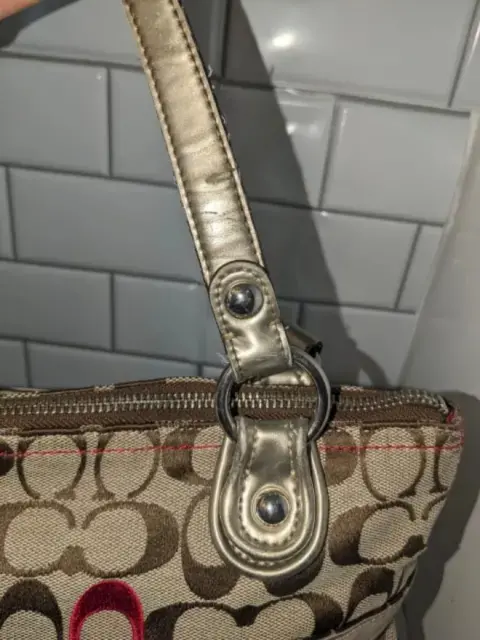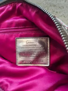 Coach poppy tote en seda.. AUTÉNTICA Bolsa Marca Coach Poppy Tote color Kaky/Dorado y Rosa.Estado: UsadoEn buenas condiciones. Sin nada que afecte, como muestro en las fotos tiene detalles de uso, nada que afecte su función o hermoso diseño.La bolsa ya está lavada y desinfectada ❤️Lista para una segunda vida ♻️