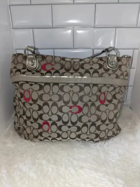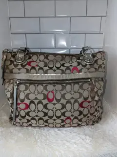 AUTÉNTICA Bolsa Marca Coach Poppy Tote color Kaky/Dorado y Rosa.Estado: UsadoEn buenas condiciones. Sin nada que afecte, como muestro en las fotos tiene detalles de uso, nada que afecte su función o hermoso diseño.La bolsa ya está lavada y desinfectada ❤️Lista para una segunda vida ♻️