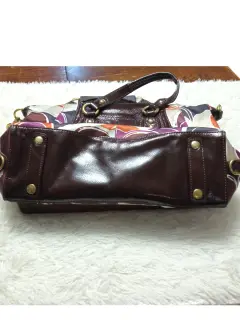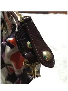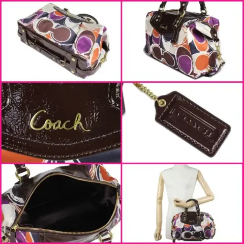Descripción:Coach Bolso satchel de satén con estampado de bufanda multicolor dibujado a mano de Coach Ashley y ribete de cuero. Parche interior de cuero grabado con Coach Creed y número de serie. 2 bolsillos interiores multifunción.En excelentes condiciones. Sin detalles.