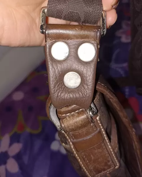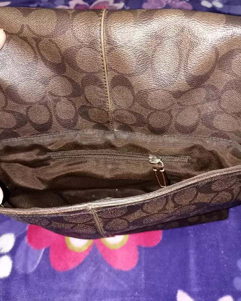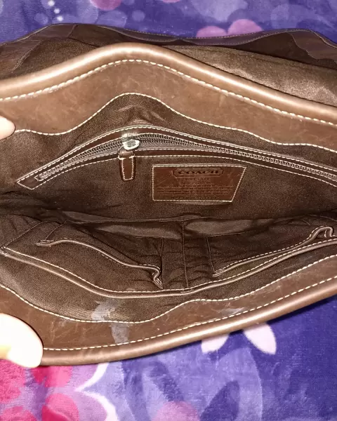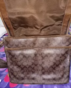 Mariconera para caballero marca COACH es 100% original, no tiene ningún detalle solo se le mandaron arreglar los remaches de las cuerdas para que no se rompieran pero no está rota ni nada.