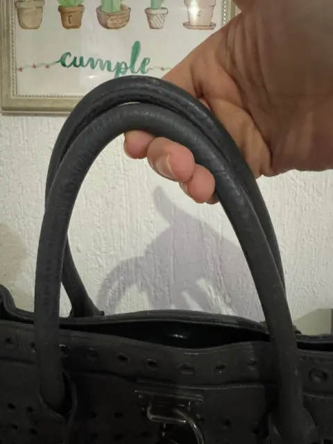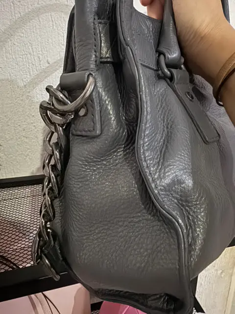 Bolsa de mano en piel en tono gris grafito. Excelente estetica con reciente baño de color.