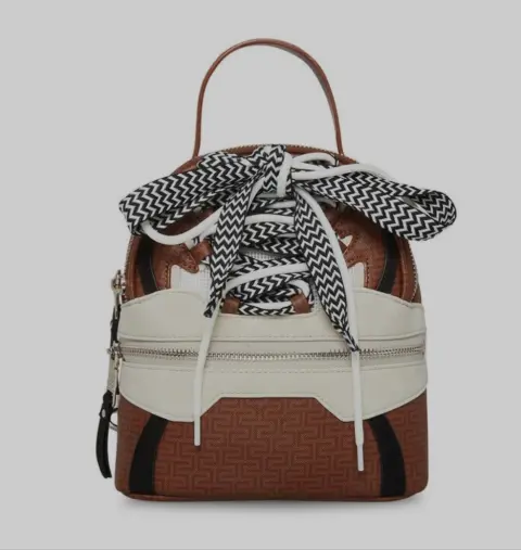 Hermosa mini mochila,color café con detalles en blanco y negro,directamente de USA,nueva sin etiquetaMarca;Steve Madden
