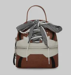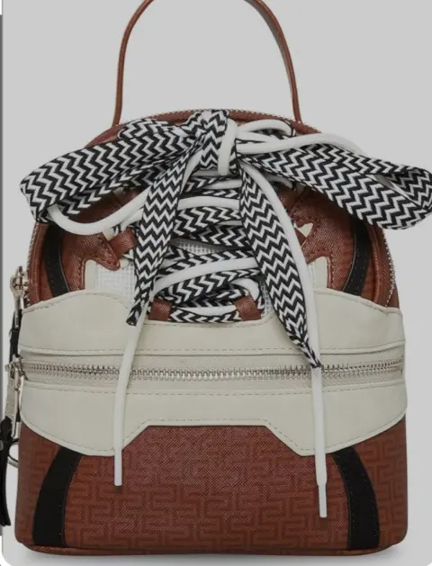 Mini mochila. Hermosa mini mochila,color café con detalles en blanco y negro,directamente de USA,nueva sin etiquetaMarca;Steve Madden