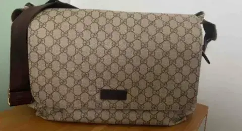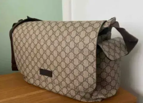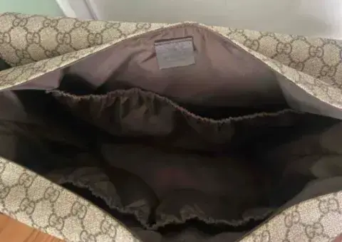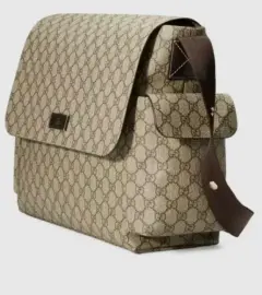 Pañalera Gucci Bolsa Original. Bolso con cambiador para bebés GG Supreme, diseñado con múltiples bolsillos y cambiador plegable.GG Supreme beige/ébano, con borde de piel caféCambiador acolchado plegable (63 x 34 cm)Bolsillos lateralesCorrea ajustable para el hombro con broche para cochecito y caída de 53 cmCierre de solapa44 cm de ancho x 28 cm de alto x 14 cm de profundidadFabricado en Italia